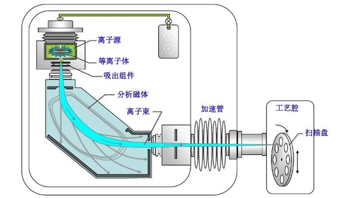 3. 離子束控制:離子束通過磁場和電場的作用被控制,以精確地定位和定向注入到待處理的半導體材料中。
